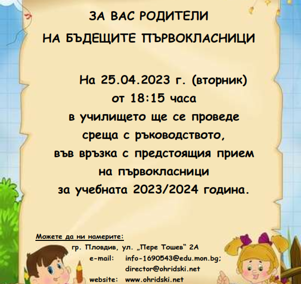 Уважаеми родители, На 07.04.2023 г. от 9:30 часа ще се проведе Пролетен спортен празник. […]