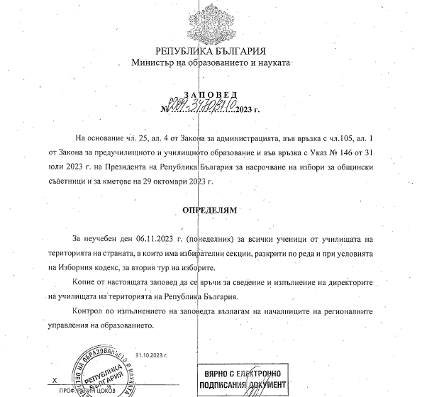Неучебен ден 06.11.2023 г.
